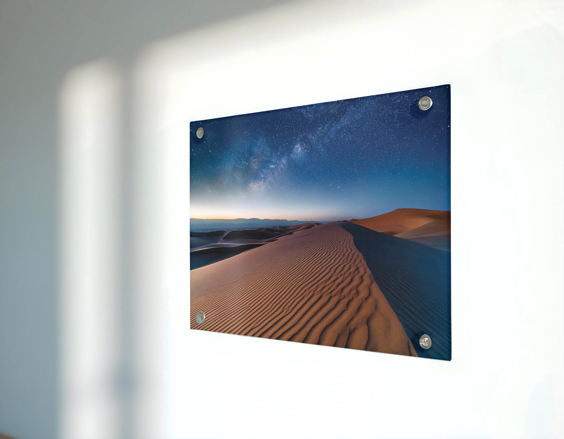 A vast, serene desert stretches endlessly beneath a breathtaking night sky filled with twinkling stars. The golden dunes roll gently under the moonlight. It’s peaceful. It’s powerful. It’s Desert Horizon — a masterfully captured moment that elevates your space with elegance, depth, and wonder.