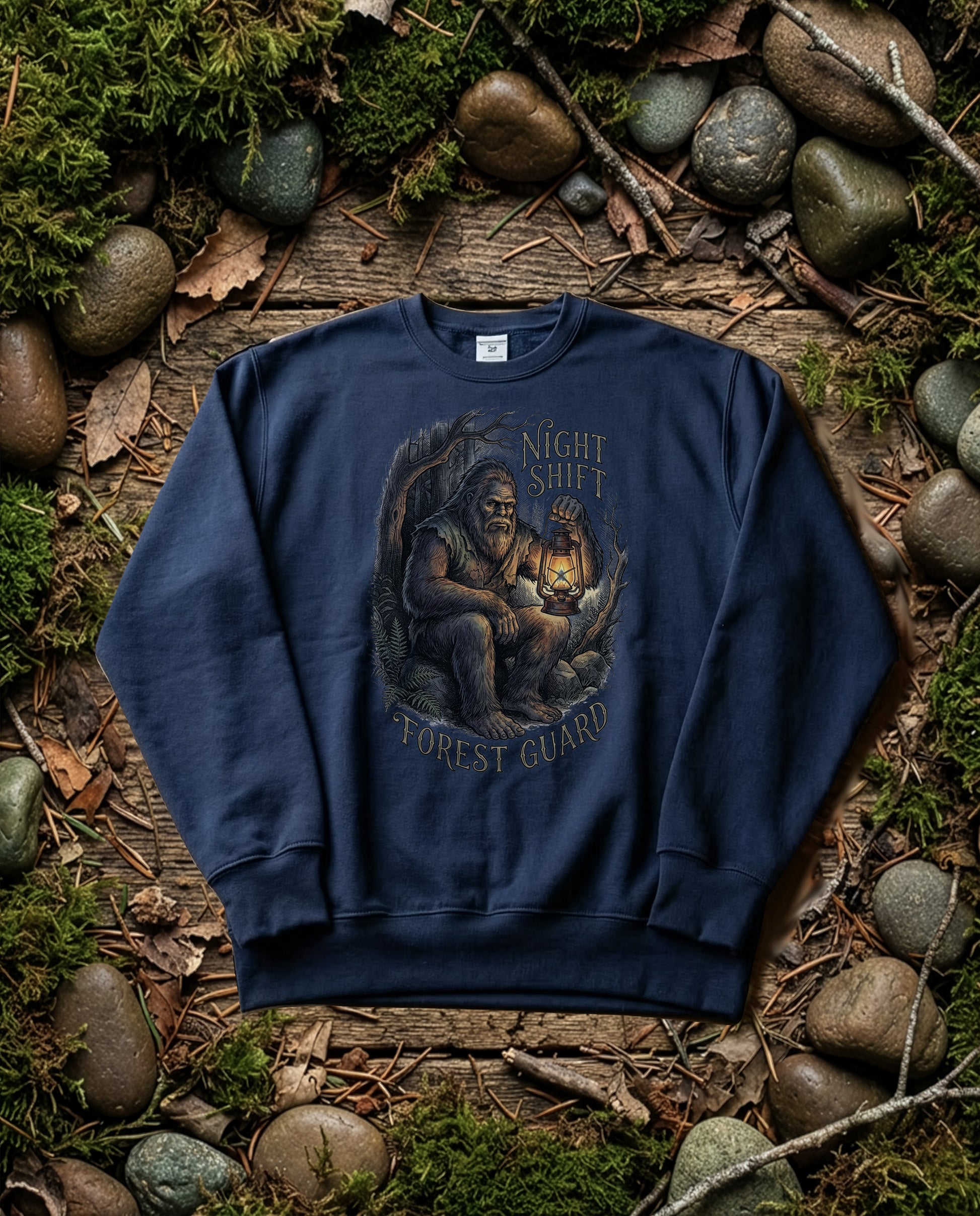 Night settled over the forest like a velvet canopy, thick and sound-absorbing, broken only by the faint rustle of branches shifting under a cool breeze. In this darkness, every sound sharpened—the snap of a twig, the distant call of an owl, the low hush of water slipping over stone. From within this shadowed world emerged a warm circle of light, trembling softly with each step. The lantern came first into view, its rusted frame catching the glow of the kerosene flame. Then the figure holding it: a Sasquatch rendered with the dramatic intensity of chiaroscuro painterly technique, half illuminated, half claimed by the night.