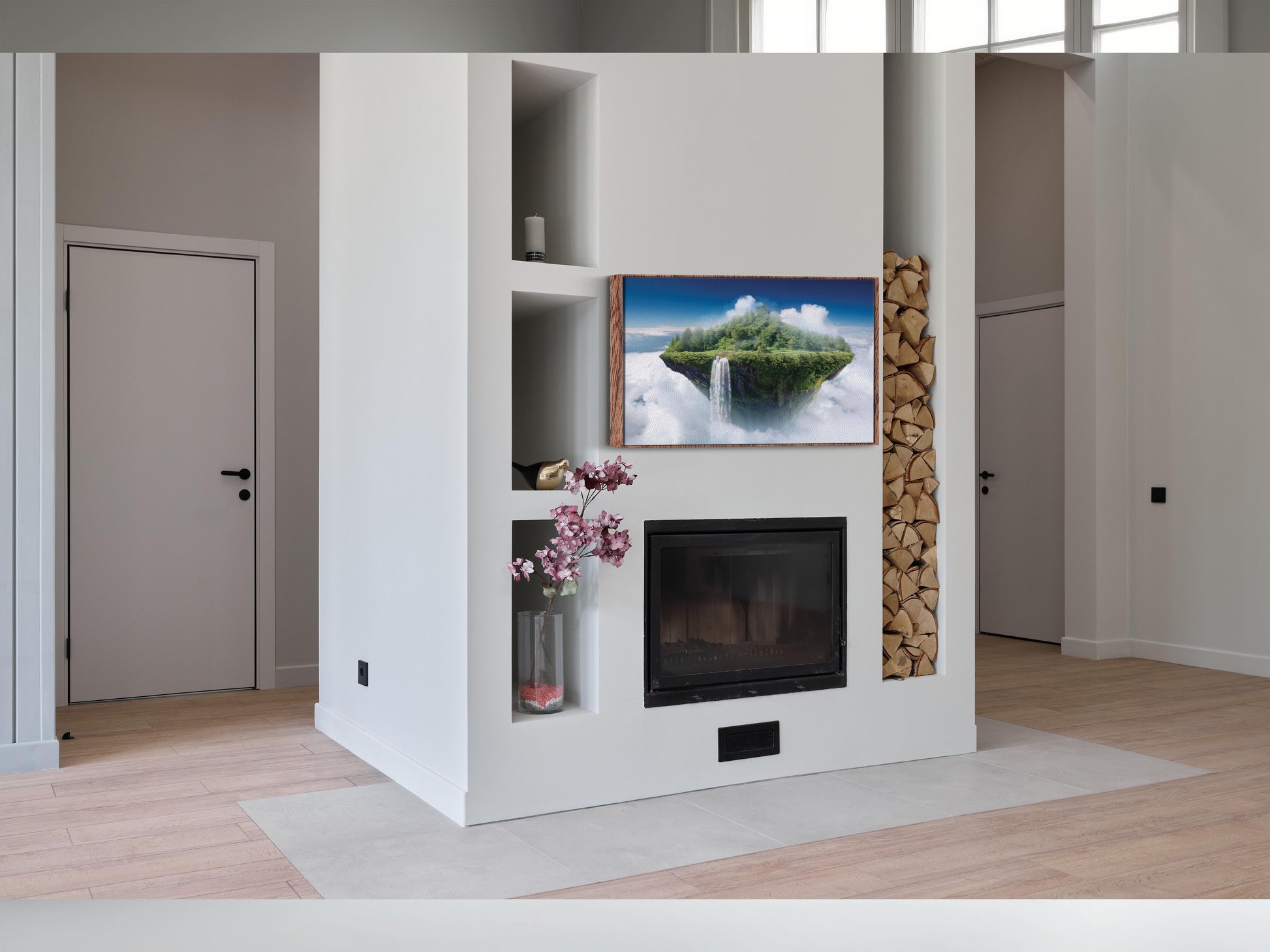 Step into a dreamlike realm where gravity defies logic and serenity soars above the clouds. “The Falls of Skyland” is more than just wall art — it’s a visual journey to a surreal world where floating islands cascade with waterfalls into the skies below. This striking piece of surreal landscape art will instantly transform your room into a sanctuary of imagination, elegance, and wonder.
